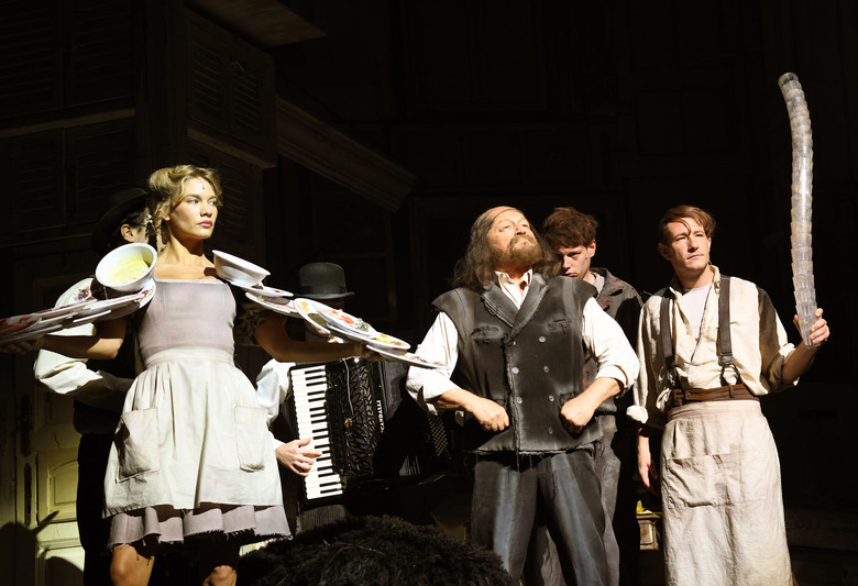 Az oldalról-alulról hirtelen ki- vagy felnyíló szekrény- és csapóajtók, akár légtornászmutatványok, késdobáló trükkök sora csak színes ráadáshab a tortán. A szegényszínház, a vándortársulatok kényszerű ötletei is megjelennek, pl. éjjeli-szekrény mint görgős bőrönd vagy hátizsák. Az itt említett „eszközök” a színház ősi formát idézik, de Budaörsön és itt is exponálva volt egy ma is használt „modern” praktika is. Itt nevezetesen a színpadi spét, (dobozba rejtett), színházi „nevetőlexikonból” történő ismétlődő citálása fontos színházcsináló kikacsintás: a színház önleleplező humora, hálás ügy. Szintén atelié mozzanatként Szellemfi „civilben” újra-újra kérdezi a „rendezőként” a csapatot instruáló Keresztes-Liliomfit, hogy „nem sok-e a játéka”? Ede / Méhes László a játék flow sodrását a kívülálló áttitűdjével ellenpontozó íróként, végig színen, kezében a példánnyal semlegesen sétálgat vagy elbújik. És nemcsak Szigligeti színpadi utasításait közli, de elő-előlépve kibeszél, magyarázgat is a nézőknek. Kiemelt, tétova szemlélődése formálja a lassítást – dramaturgiai értelemben is a pörgést fékező – kulcsszereppé. A többi „öreg” is remekel. Kányai figuráját Hegedűs D. Géza bravúrral formálja a régi színházcsináló egyik pólusát eljátszó népszínmű-színészt. Id. Schwartz / Borbiczki Ferenc és a köztes generációt képviselő-játszó Kamilla / Szilágyi Csenge egyszerűen tökéletesek a gépezetben.