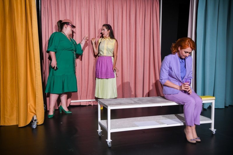 Myllyaho drámájában a három nőt nemcsak kávézókban, hanem iskolában, hajókiránduláson és rendőrségi fogdában is látjuk, ahova részegen zárják be őket egy átmulatott éjszaka után. Mivel valamennyi figurát a három főszereplő alakítja, jó lehetőség kínálkozott, hogy a szatmári társulat három kiváló művésze: Gál Ágnes, Keresztes Ágnes és Moldován Blanka szinte pillanatról pillanatra más-más szereplő „bőrébe bújva” teremtse meg a kríziseken átevickélő nők történetéből kibomló, egyszerre nevettető és elgondolkoztató „dramedy” világát. Mindhárom színésznő kiváló „átváltozóművésznek” bizonyul, az előadás pedig egyfajta „tükörnek”, amelyben a hétköznapi problémák labirintusában csetlő-botló ember magára ismerhet, nevethet vagy sajnálkozhat is önmagán.